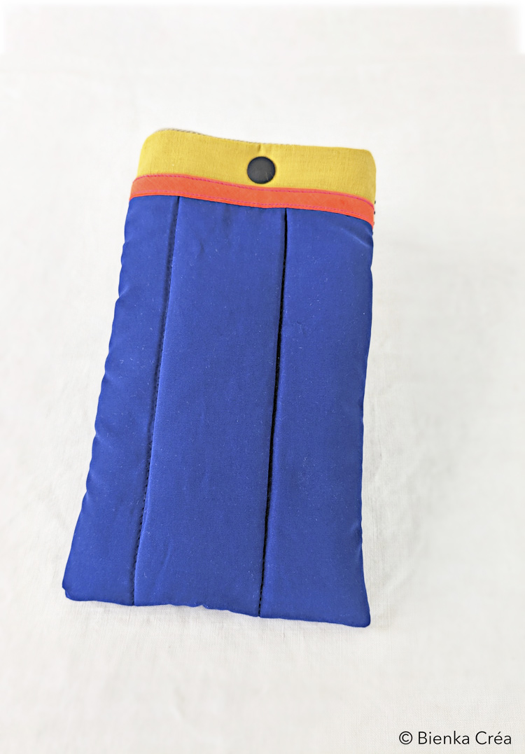 Étui-pochette matelassé et doublé fabriqué en France artisanalement à partir de tissus chinés et valorisés.